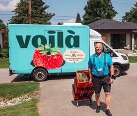 [34] Pour soutenir ses affirmations d’utilisation et de publicité des Marques de commerce VOILA, Mme Demeo fournit de nombreux exemples représentatifs montrant comment les Marques de commerce VOILA sont mises en évidence sur le site Web VOILA, l’application VOILA, les camions de livraison VOILA, le personnel de livraison et les sacs de magasinage, ainsi que sur les matériaux de campagne marketing distribués à travers le Canada. Mme Demeo fournit également un échantillon représentatif de la couverture médiatique, y compris des articles du The Globe and Mail, du Toronto Star et du Financial Post, ainsi que des détails sur certains des prix et reconnaissances reçus par l’Opposante et la plateforme VOILA.