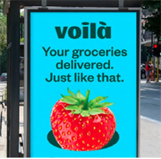 ·Tout au long de l’ensemble de l’expérience client, la marque de commerce VOILA est constamment présente et proéminente. La marque apparaît bien en vue en haut de la page Web du site VOILA et reste présente pendant que les clients font leurs courses, examinent les produits et les ingrédients des produits, passent commande dans la section boulangerie du site VOILA, recherchent des recettes ou font des achats de confiseries saisonnières. La marque VOILA apparaît bien en vue sur la confirmation par courriel qu’un client reçoit à la fin de la commande et sur les camions de livraison VOILA conduits par des assistants de livraison portant des vêtements de marque VOILA qui livrent des sacs d’épicerie de marque VOILA à la porte du client [para 34].